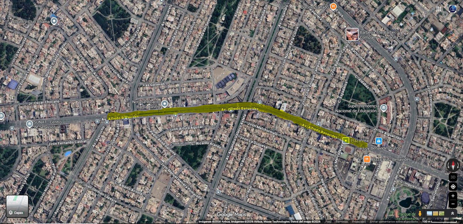 La Zonificación de la avenida Alfredo Benavides es CZ, Comercio Zonal.